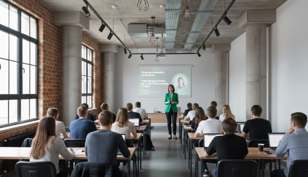 Dnia 15 stycznia 2026 roku poprowadziliśmy pierwsze zajęcia stacjonarne w Akademii Humanistyczno-Ekonomicznej w Łodzi na kierunku Informatyka, w ramach przedmiotu związanego z aplikacjami webowymi.